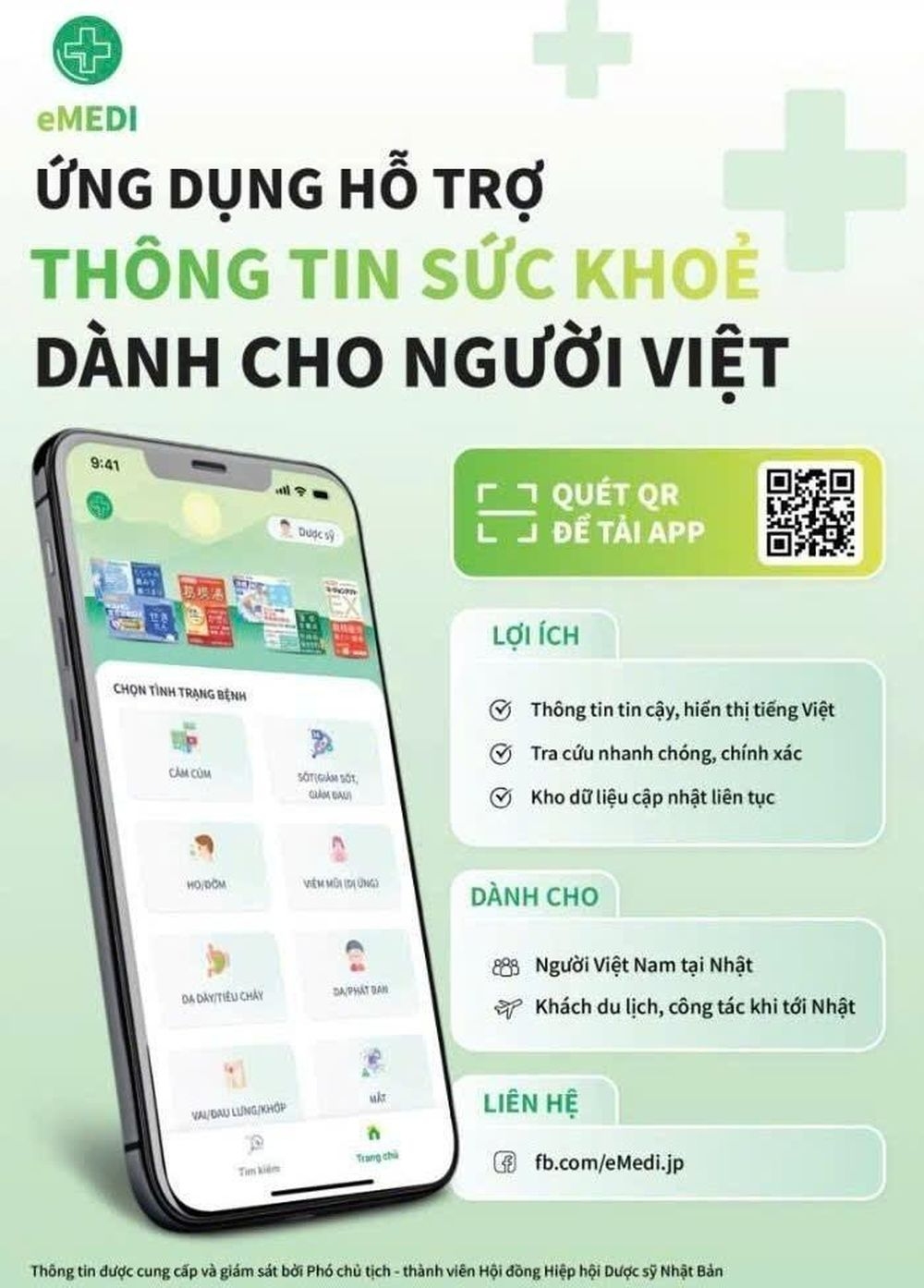 Phương Lan, 19 tuổi, du học sinh tại Tokyo, chia sẻ trải nghiệm thực tế: “Hôm trước em bị cảm, ra hiệu thuốc mà không biết hỏi sao. Nhờ eMEDI, em chỉ cần nhập triệu chứng đúng tình trạng bệnh của mình, ứng dụng hiển thị thông tin thuốc đầy đủ. Em đưa điện thoại cho dược sĩ và mua được đúng thuốc. Cảm giác như có một dược sĩ người Việt đi cùng vậy”.