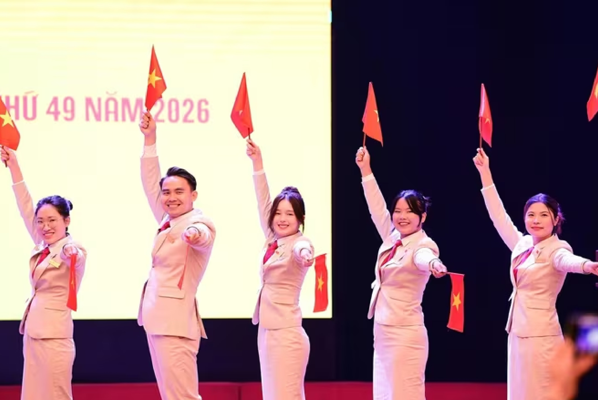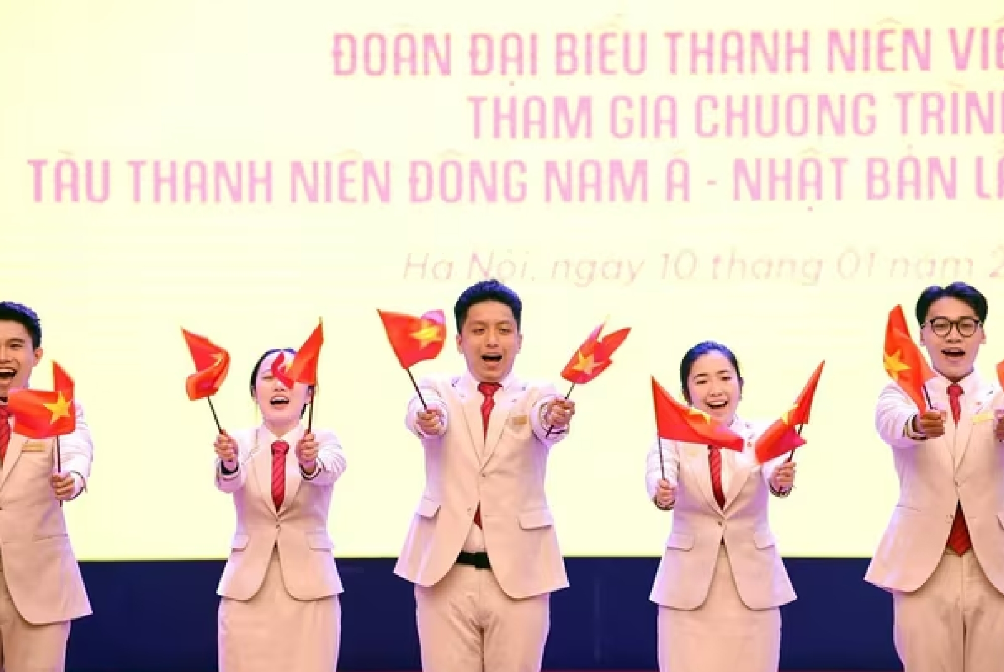 Đoàn đại biểu thanh niên Việt Nam tham gia chương trình Tàu Thanh niên Đông Nam Á – Nhật Bản (SSEAYP) lần thứ 49 năm 2026 xuất hiện ấn tượng trong lễ ra mắt diễn ra tại Học viện Thanh Thiếu niên Việt Nam (Hà Nội).
