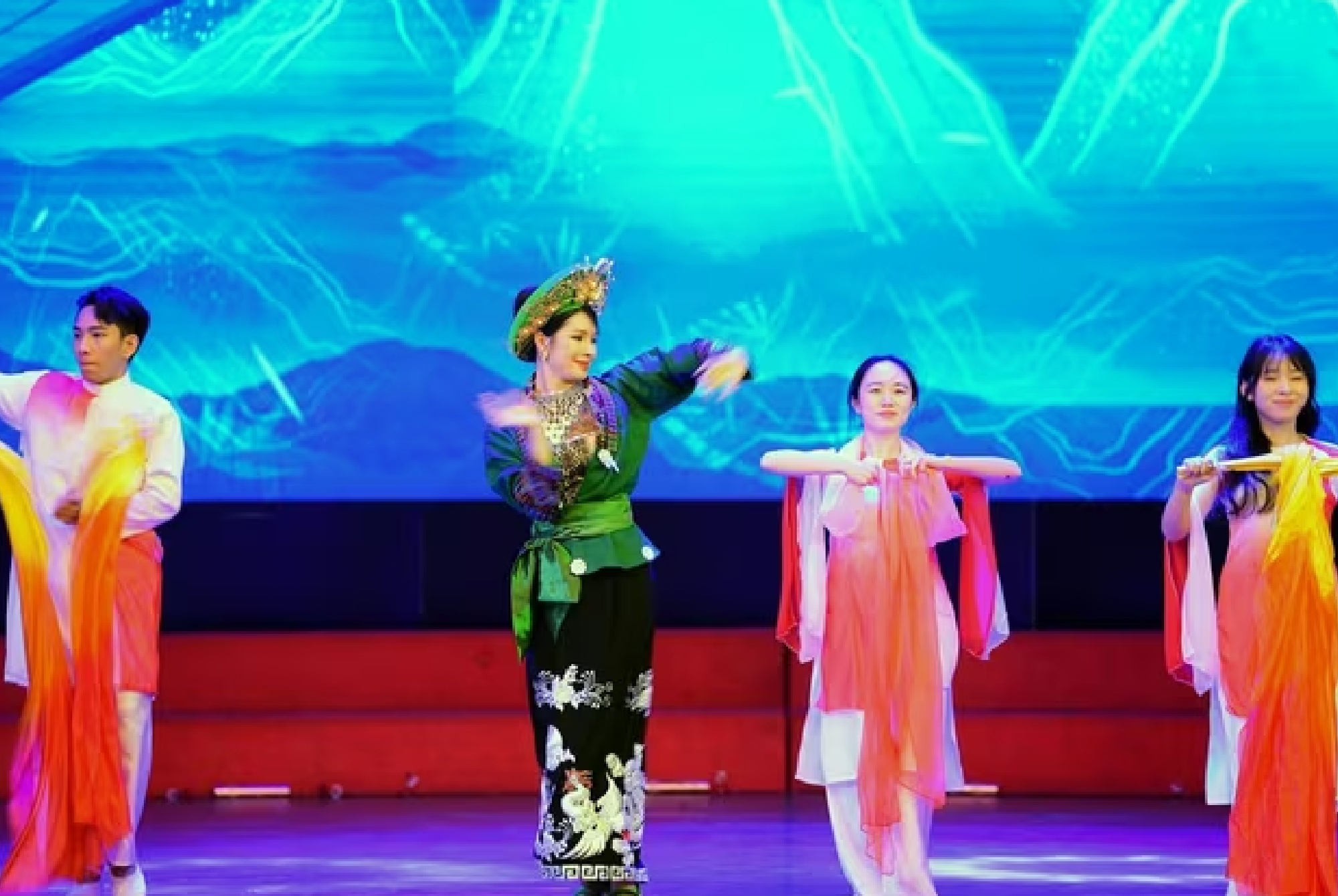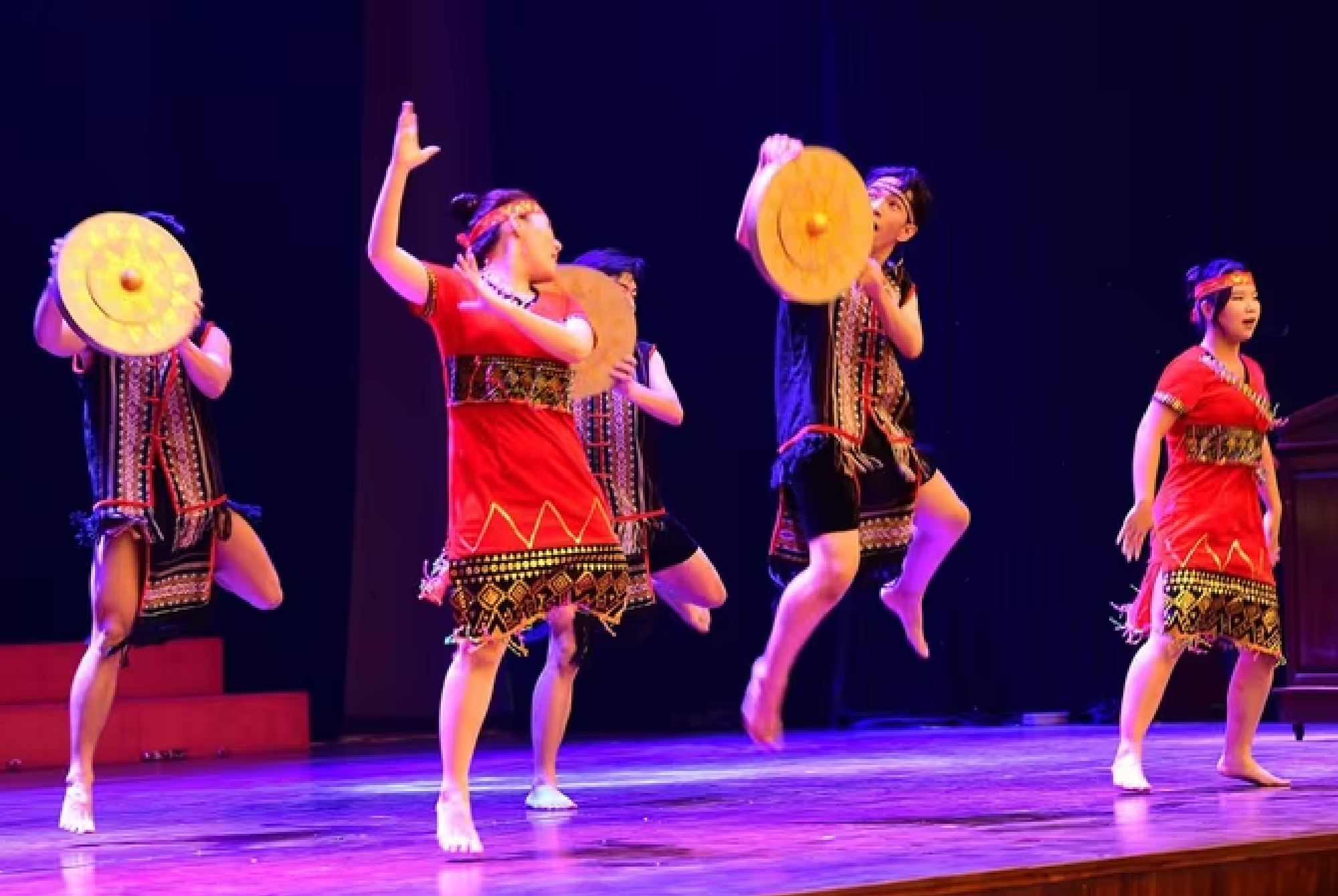 Trong các tiết mục trình diễn sân khấu, các thành viên mang đến màn múa cồng chiêng, múa mâm vàng.